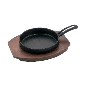 サイズ:鉄板/直径150㎜(取手含全長235×H45mm) 木台/180×220×H15mm