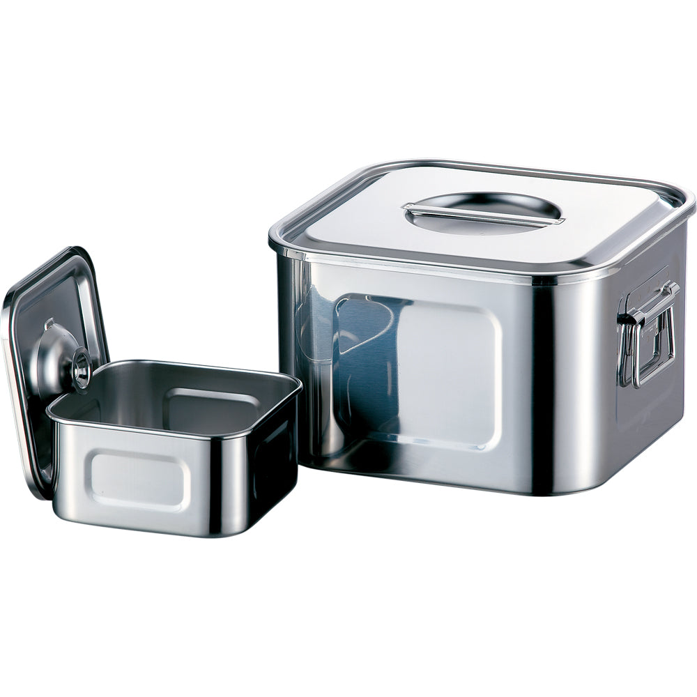 AG18-8ツマミ付浅型角キッチンポット 10.5cm