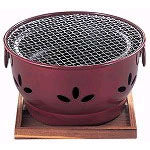 材質:外コンロ/アルミ製アクリル樹脂加工 内コンロ/鋳鉄 網/クロームメッキ 木台/焼杉